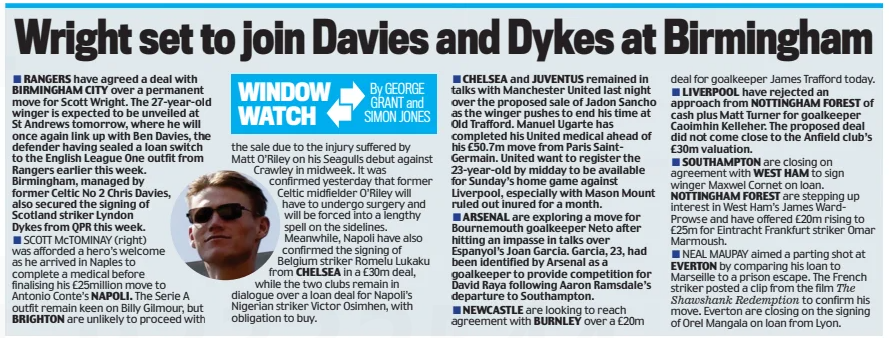 Birmingham City are set to unveil the signing of Scott Wright from Rangers after the 30 August deadline, according to the Scottish Daily Mail.