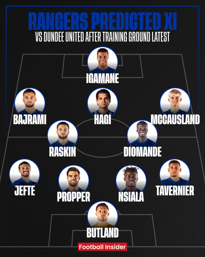 Vaclav Cerny, Leon Balogun and Connor Barron will all miss out at Tannadice, with Clement potentially tempted to pull Nedim Bejrami out to the left, bring Ianis Hagi back in after his European ineligibility, and drop Yilmaz to the bench.
