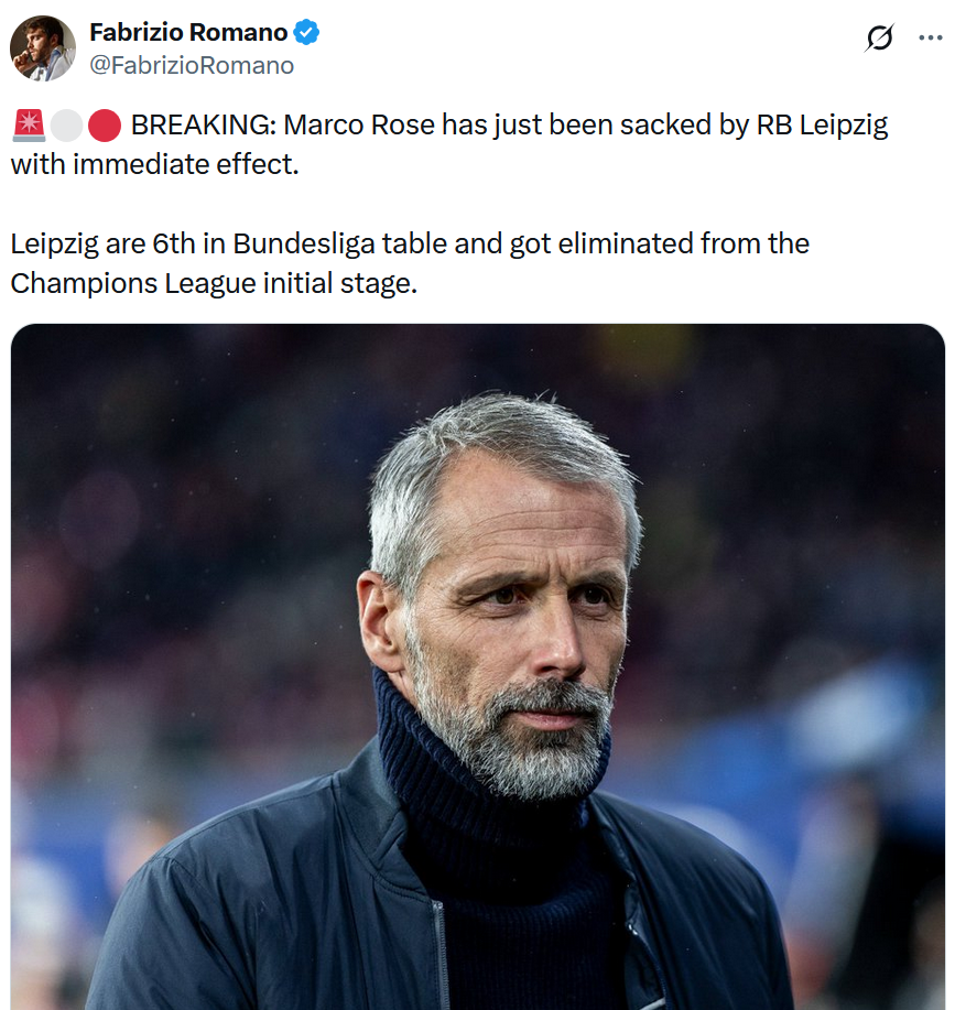 Fabrizio Romano reported on Sunday (30 March) that Rose has been dismissed as head coach of RB Leipzig after a poor run of recent results.