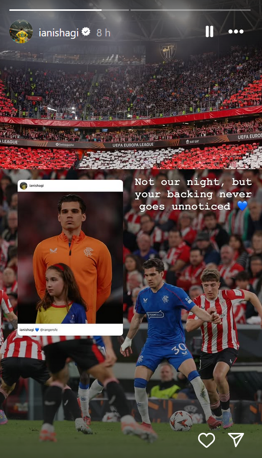 “Not our night, but your backing never goes unnoticed,” he posted, directed at Rangers supporters.