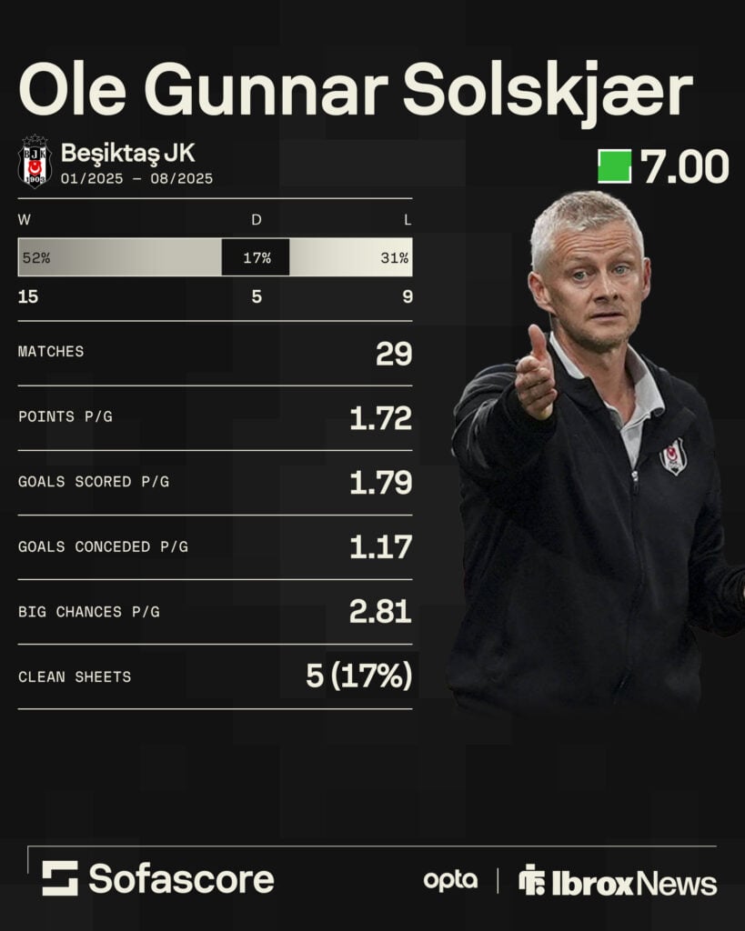 Solskjaer ended his time at Besiktas with only a 17 per cent clean sheet record, but his attacking numbers were brilliant.
