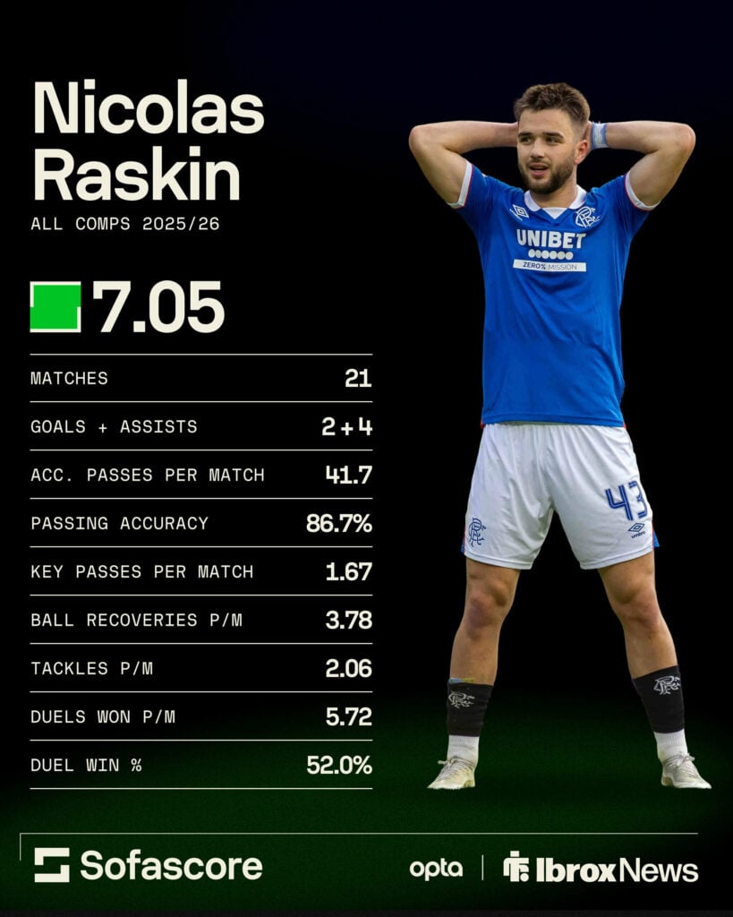 However, Raskin excelled in Rangers’ 3-0 win over Dundee on 9 November, and there is hope among the fans that he is here to stay in the long run.