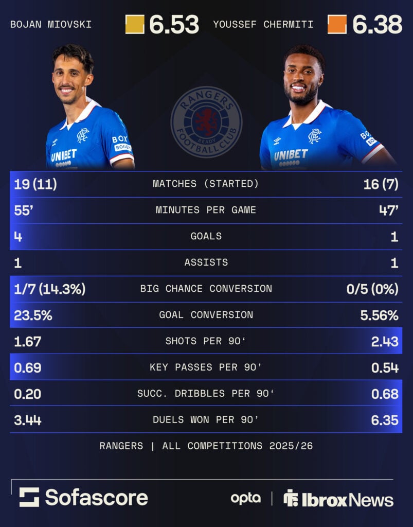 Chermiti joined Rangers for £10million from Everton on 1 September, and has registered just two goal contributions in 16 appearances.