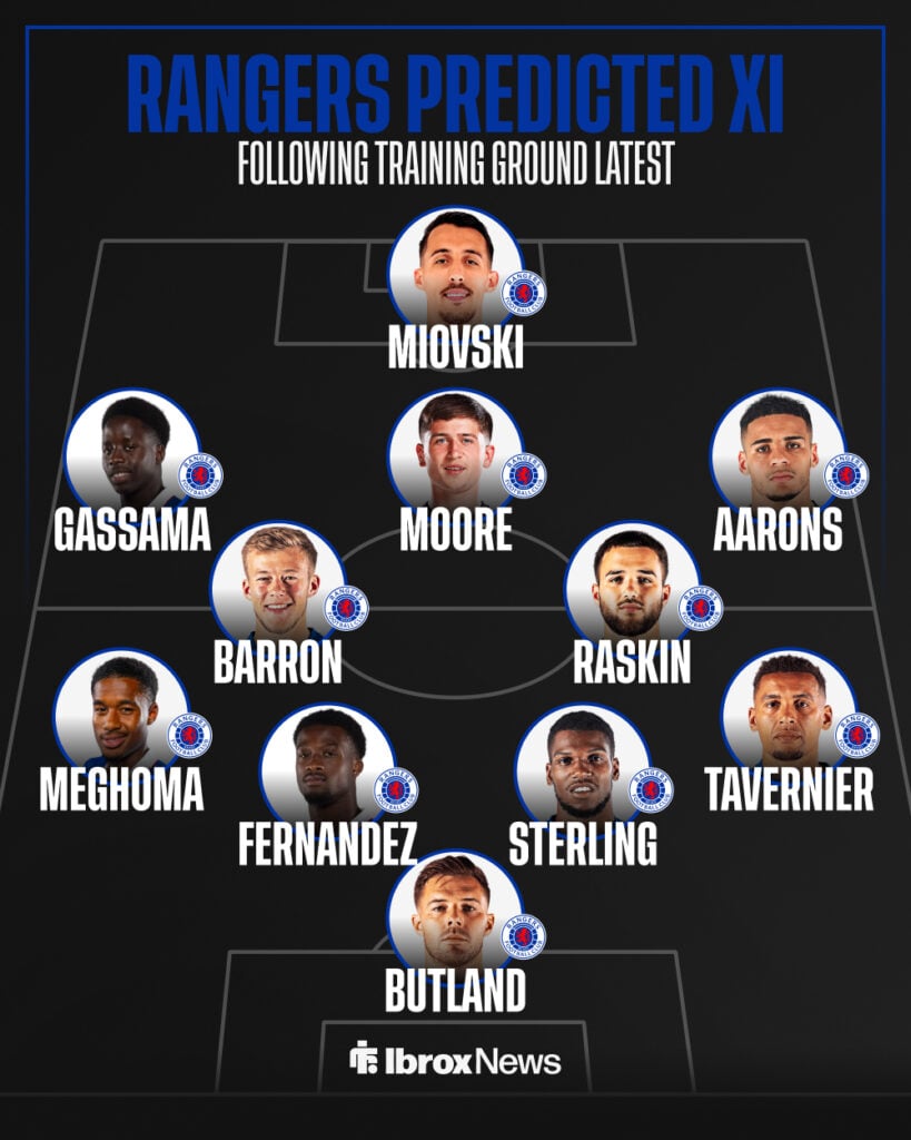 Rangers predicted XI: Butland, Tavernier, Sterling, Fernandez, Meghoma, Barron, Raskin, Aarons, Gassama, Moore, Miovski