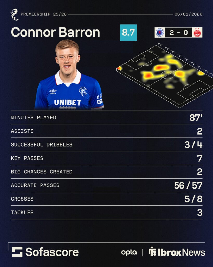 Rangers beat Aberdeen 2-0 at home in the Scottish Premiership on Tuesday, and Barron was once again a standout for Rohl.